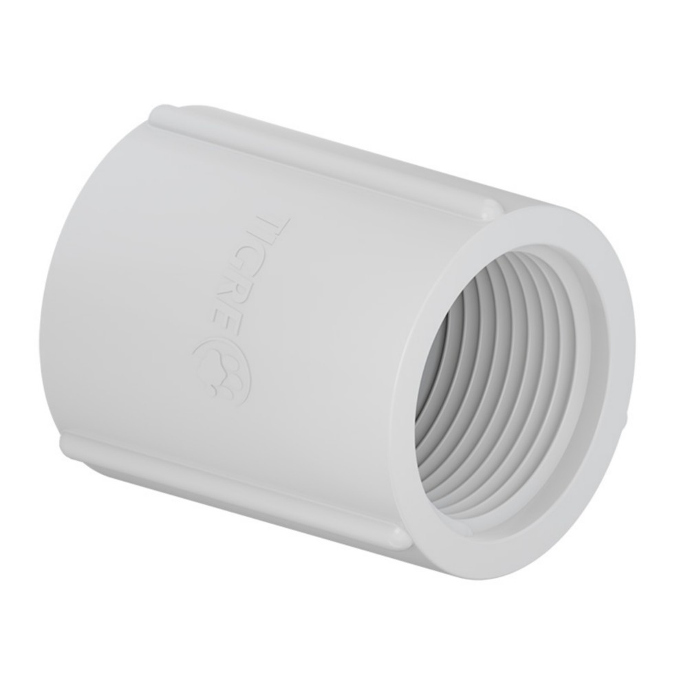 A Luva com Rosca Branca da Tigre é recomendada para realizar a ligação entre canos da linha Aquatherm e não sofre prejuízos químicos decorrentes da água, impedindo oxidações, corrosões e obstruções que comprometam a passagem de condutores.